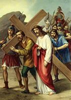 5th Station: Simon of Cyrene helps Jesus carry the cross